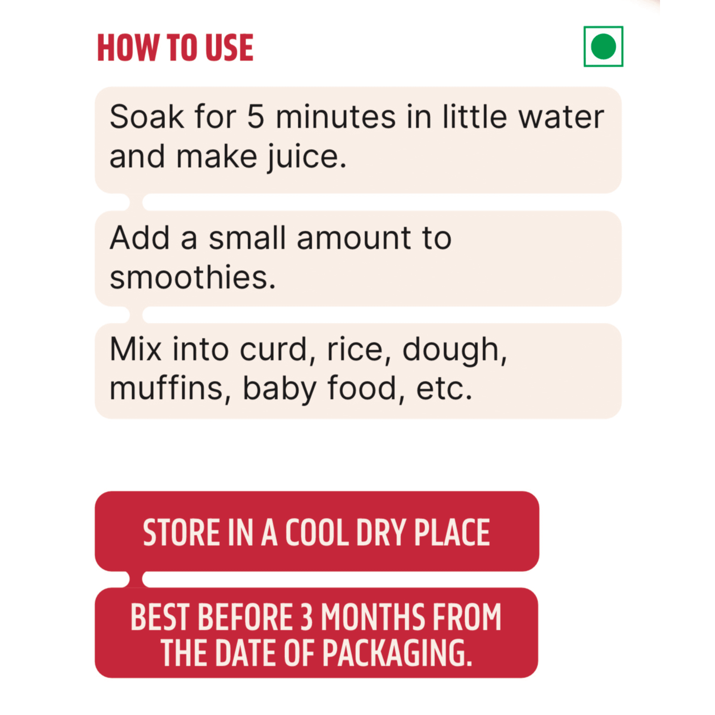 Storage Instruction : Store in cool dry place. Refrigerate after opening.