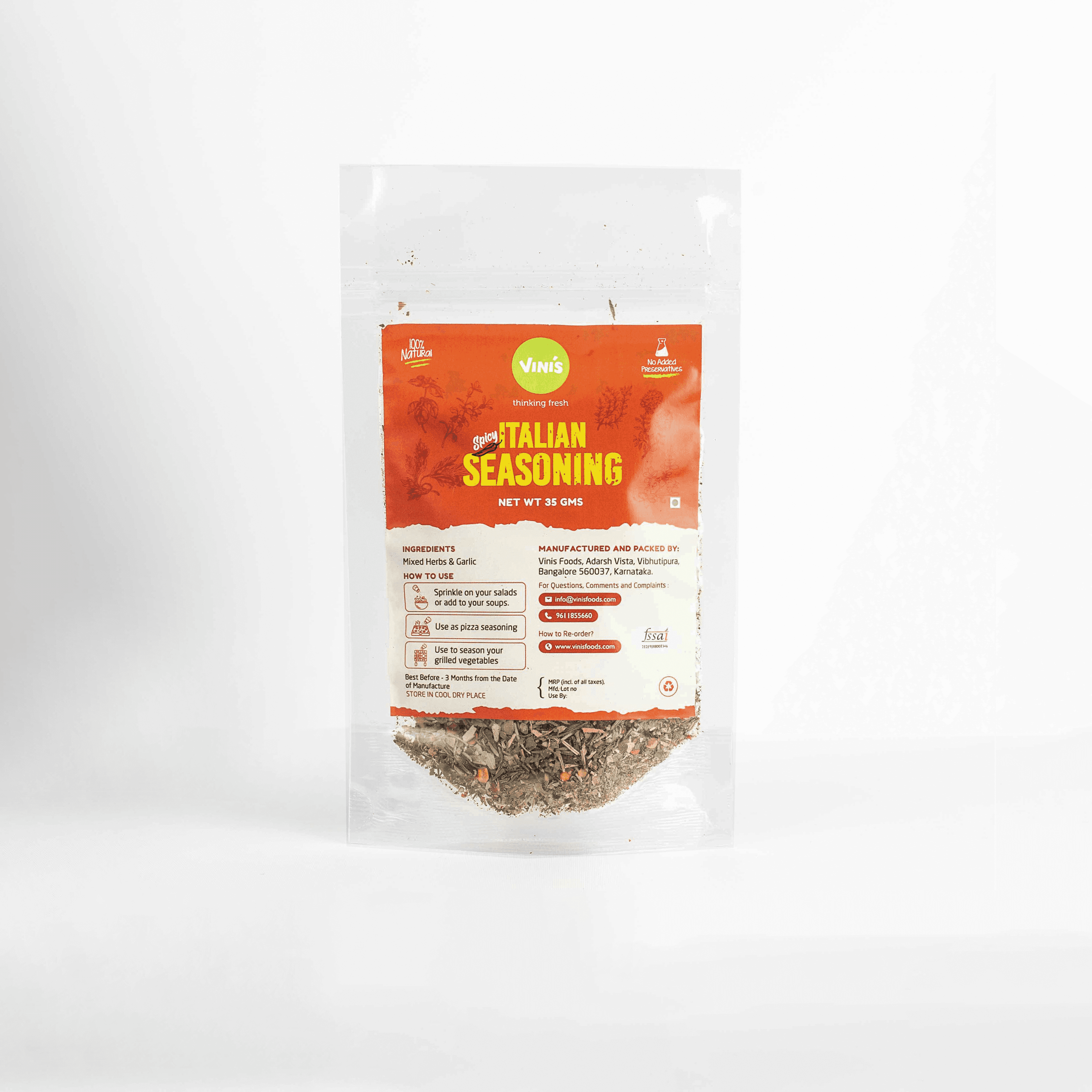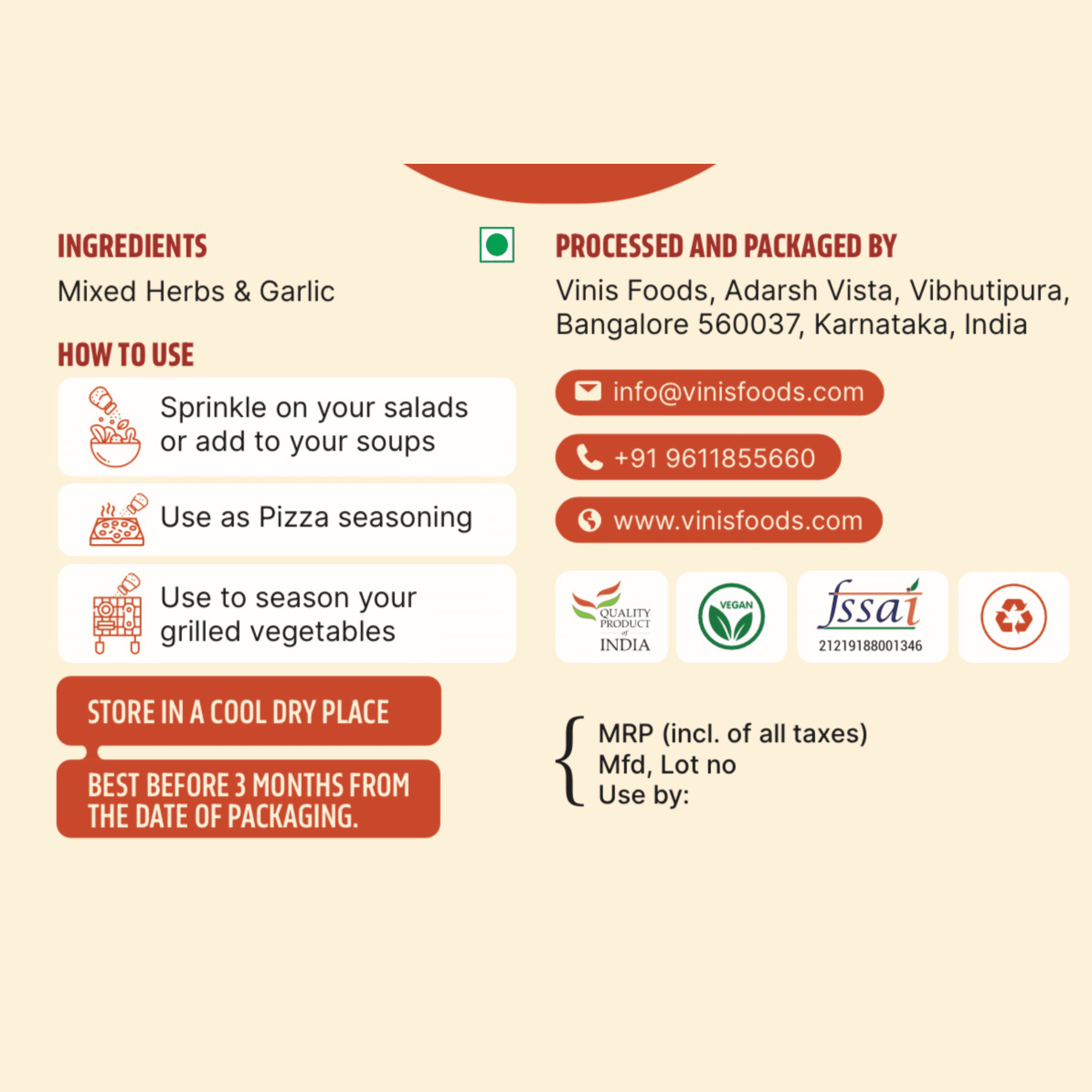 Ingredients : Mixed herbs, Garlic, Chilli flakes