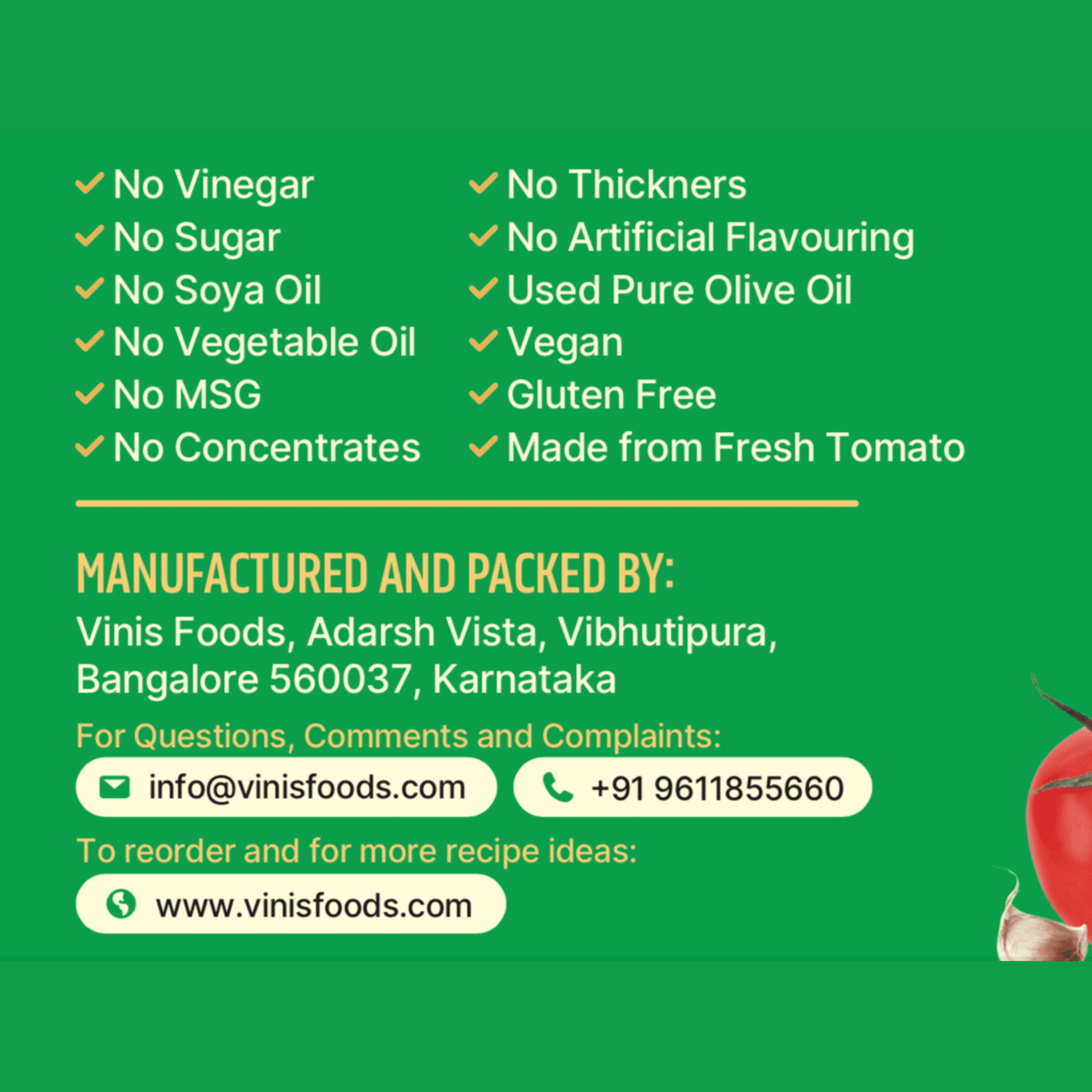 Made with care by Vini’s Foods, a clean-label brand that believes in purity, freshness, and honest ingredients — free from preservatives, chemicals, or artificial flavours.