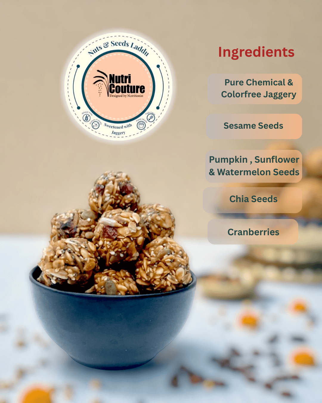 - Includes Til-Gud & Nuts-Seeds laddus - 8pcs of each