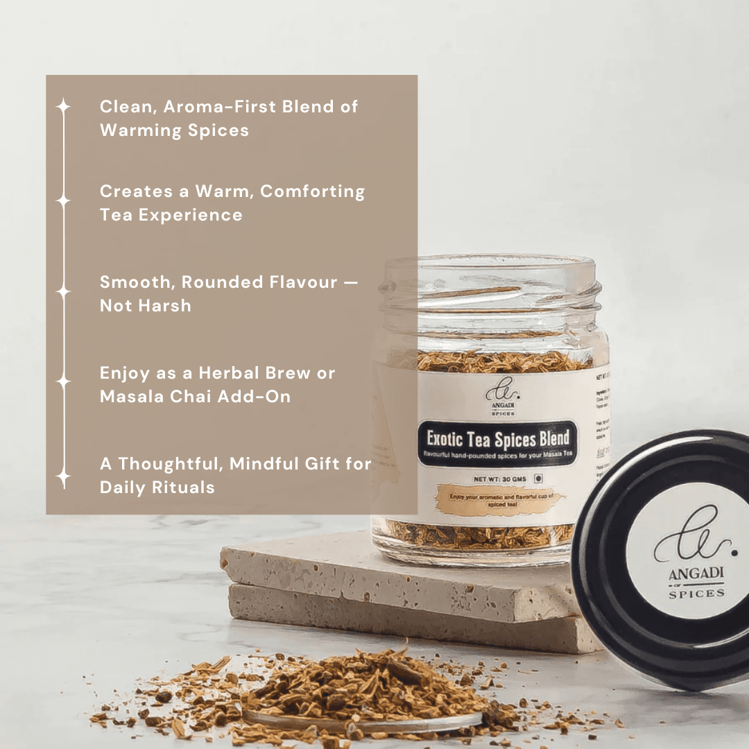 • Complete Masala Chai Experience – Includes a spice-forward Masala Chai for everyday brewing and an aroma-led Tea Spices Blend for customising flavour or brewing on its own.